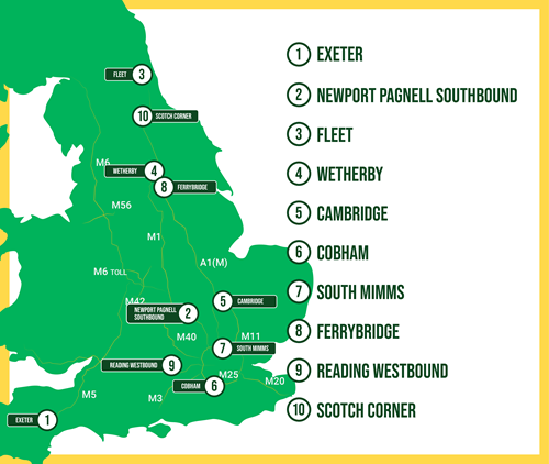 Cambridge Services, which ranked fourth in our 2019 research, has now dropped to number five, potentially reflecting shifts in driver priorities over the past five years, including greater emphasis on green space and rapid EV charging.